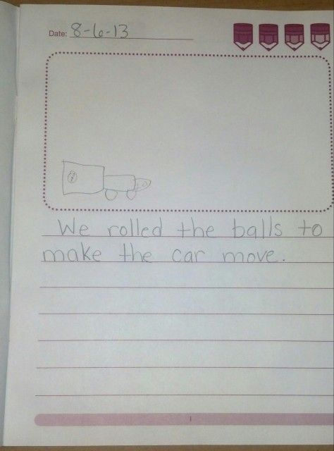 After each of our activities, I had J record what we did in her science journal by drawing a picture. I then had her dictate to me what her picture was, and I wrote a simple sentence under drawing